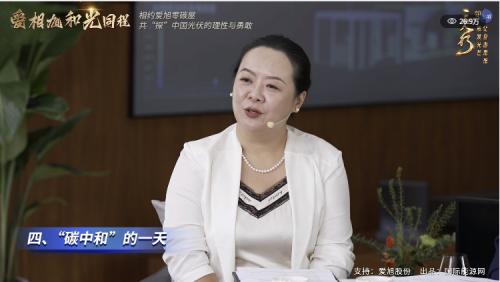 吕芳:爱旭的“零碳小屋”给了人们很好的体验感,从建筑的外立面到内部的负荷,整个零碳的可测、可视、可控的痕迹。今天的“爱旭零碳小屋”,考虑的非常周全,涉及到照明、空调、供热、电器等方方面,这是一种趋势。但如何把这一系列用可再生能源做一揽子的解决方案,小到一座建筑,大到一个社区、乡镇,甚至更大,我觉得爱旭无论是单做组件还是做这种能源一揽子解决方案未来都大有可为。