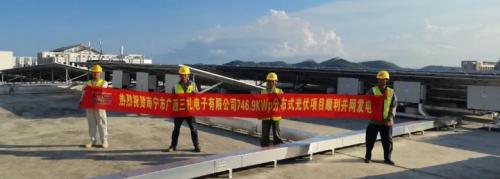 近日,英利源盛建工总承包的南宁市广西三礼电子有限公司746.9千瓦分布式光伏发电项目并网发电。该项目依托南宁市广西三礼电子有限公司屋顶建设分布式光伏发电系统,采用自发自用,余电上网,年均发电量约为752592千瓦时,年节约标准煤约301.04吨、二氧化碳约750.33吨、二氧化硫22.58吨、氮化物11.29吨,助力企业绿色用能,减少碳排放。