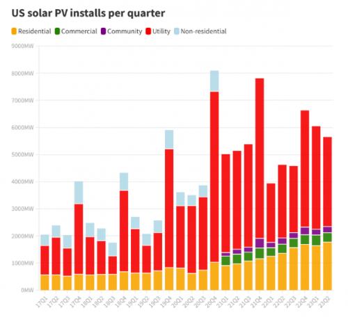 作为老牌的光伏大国,美国一直以来凭借成熟的投资环境与多样化的业务模式,保持着稳健的发展。而持续的电力能源需求,也赋予了其丰富的发展潜力,让美国市场在规模和影响上始终居于行业前列。在经历了2022年短暂的装机下滑之后,2023年美国市场已有明显的复苏态势。根据近期由SEIA和Wood Mackenzie联合发布的《第二季度市场洞察报告》,2023年第二季度,市场整体新增装机同比增长达到20%,其中户用光伏装机表现尤其亮眼,创下了1.8GW的季度装机记录,助力整个上半年装机累计达到近12GW;预计全年新增装机将达到亮眼的32GW,市场也将在下半年开始迈入“超快车道”,其中大型地面电站仍将是装机增长的主要动力。
