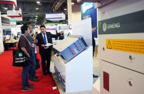 同期展出的上能电气350kW组串式逆变器也吸引了大量围观。SP-350K-USH拥有12路MPPT,最大支持32组串输入;具备更高效率、支持大方阵设计、整机IP66防护+C5防腐强可靠性等多项优势,适用于各种电站地形和环境,可显著满足美国光伏市场对产品效率和度电成本的严格要求。