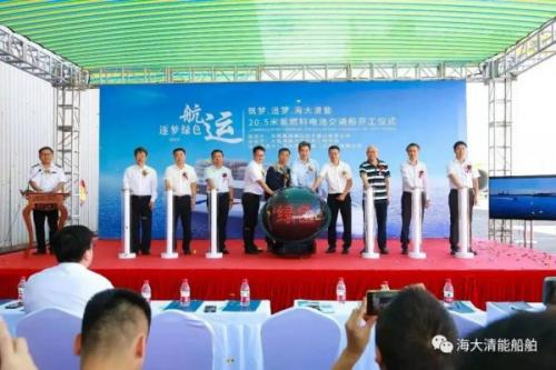 2023年9月20日,我国首艘20.5米氢燃料电池海上交通船开工仪式在海大清能厂内成功举行。