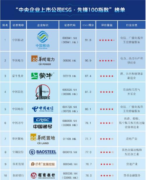《蓝皮书》以441家中央企业控股上市公司为评价对象,基于企业公开信息及第三方信息进行内容和定量分析,对其ESG治理水平、社会环境价值创造和风险管理水平进行综合性评价,排名位列前100的企业形成“央企ESG*先锋100指数”,为国务院国资委统筹推动央企上市公司ESG工作提供重要参考。其中,华润电力位列该指数榜单第二,达到【五星佳】水平。