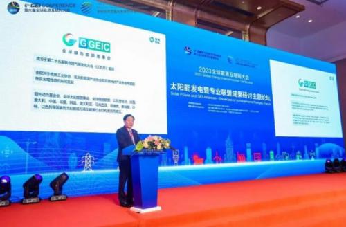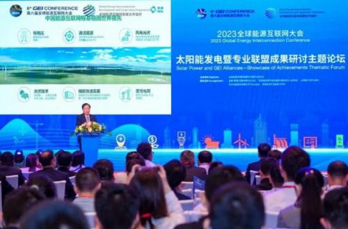 9月27日,以“全球能源互联网与新型能源体系”为主题的2023全球能源互联网大会在北京举行。由协鑫集团联合主办的“太阳能发电暨专业联盟成果研讨主题论坛”作为本届大会的平行论坛之一,邀请政府部门、专家学者及国内外知名企业家等齐聚一堂,围绕产业发展、政策推动和技术创新等进行交流探讨。全球绿色能源理事会主席、亚洲光伏产业协会主席、协鑫集团董事长朱共山出席论坛,并作题为《全球能源互联网赋能光伏产业大发展》的主题演讲。