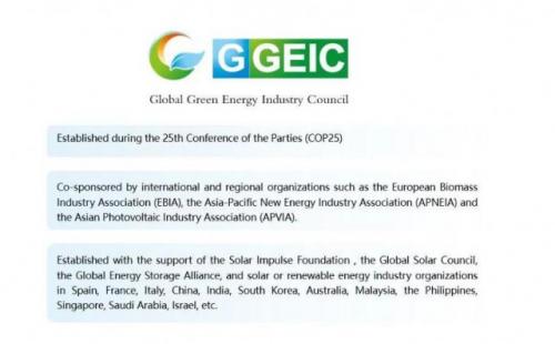 全球绿色能源理事会于第二十五届联合国气候变化大会(COP25)期间,由欧洲生物质工业协会、亚太新能源产业协会和亚洲光伏产业协会等国际性及区域性组织共同发起,阳光动力基金会、全球太阳能理事会、全球储能联盟,以及西班牙、法国、意大利、中国、印度、韩国、澳大利亚、马来西亚、菲律宾、新加坡、沙特、以色列等国家的太阳能或可再生能源行业机构支持而成立。今年11月,第二十八届联合国气候变化大会(《联合国气候变化框架公约》第二十八次缔约方大会、COP28)将在迪拜世博城举行,中美欧各方日前正在密集对话,消除分歧,围绕气候行动开展务实合作。