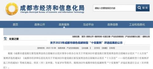 近日,成都市经济和信息化局对2023年成都市绿色低碳转型“十佳案例”评选结果进行公示,通威太阳能双流基地成功入选。