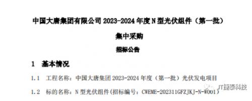 10月17日,中国大唐集团有限公司发布了一则重要公告,宣布其2023-2024年度5GW光伏集采招标项目要求全部采用N型产品,此举引起了业内的广泛关注。作为能源行业的领军企业,大唐集团此次决策的出台不仅彰显了其对N型产品卓越性能表现的认可,更凸显了其在光伏领域的战略眼光和前瞻布局。