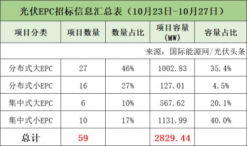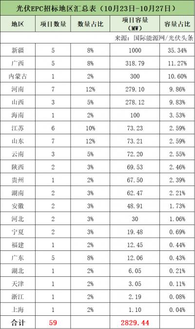 本周中核、华能、国家电投、中国能建、国家能源集团、华电等企业发布了59个光伏招标项目,装机规模合计2829.44MW。