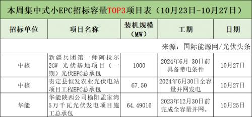 此外,本周分布式小EPC、集中式小EPC招标容量Top3具体情况如下:
