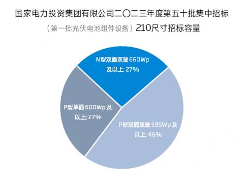 近日,电能易购招标采购平台中公示了国家电投二〇二三年度第五十批集中招标(第一批光伏电池组件设备)中标候选人。本批集采中,210尺寸组件共计招标1.5GW,其中210 N型组件占比超26%,高功率、大尺寸的210+N组件领先性和可靠性优势逐步显现,招标占比持续提升。兼具超低衰减、优异的双面发电性能、超低工作温度系数等优势的天合N型700W+系列组件能极好地适应复杂场景,将度电成本降至更低水平。