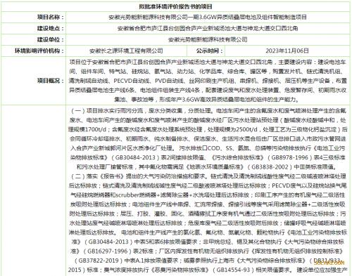根据建设项目环境影响评价审批程序的有关规定,经审查,我局拟对安徽光势能新能源科技有限公司《安徽光势能新能源科技有限公司一期3.6GW异质结叠层电池及组件智能制造项目》环境影响评价文件作出审批意见。为保证此次审查工作的严肃性和公正性,现将拟作出审批意见的环境影响评价文件基本情况予以公示,公示期为5日。