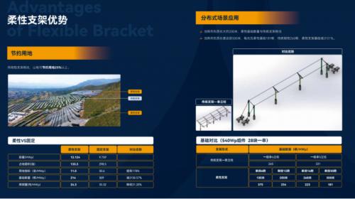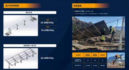 从与传统支架在用地面积、用钢量、安装工程量等多组对比数据可以看出,一道新能柔性支架在集约土地利用率、降低成本及施工周期等方面助力着光伏电站全生命周期内的低LCOE和高收益的最优呈现。