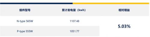 N型组件和P型组件月发电量对比数据