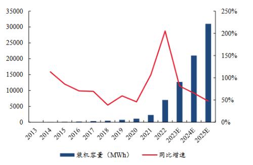 欧洲新能源占比高,储能需求随之快速增长。德国、英国、法国等国家储能发展潜力大。根据solar power EU及EnergyTrend数据测算,2023-2025年欧洲户储装机复合增速仍有望达到50%以上。虽然行业去库仍在进行,但是基于德国装机同比的较高景气,我们看好欧洲户储市场中长期成长性。