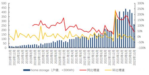 欧洲市场来看,德国是欧洲最大的户储装机国,意大利的储能装机增长也非常快。德国户储2023年1-10月装机为3.77GWh,同比增速138%;其中2023年10月装机264MWh,同比增速41.9%,环比增速-32.1%。