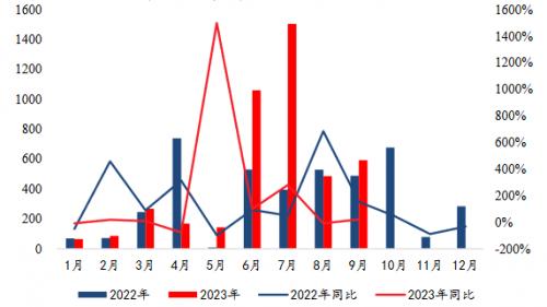 根据EIA数据,美国1-9月投运储能(>1MW)规模为4.3GW,同比增长43%。对比EIA每月公布的储能规划装机和实际装机情况,我们认为美国大储装机延期情况仍然明显,比如2023年8月规划的9月装机为1703MW,而2023年9月实际装机仅为593MW。展望未来,我们认为随着利率下行、供应链危机缓解以及IRA等政策的推进,美国大储装机需求有望得到释放。