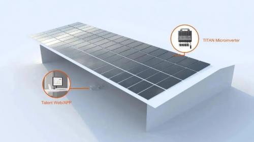 TITAN微型逆变器支持RS485通讯方案,经RS485通讯线连接至数据采集器,数据通过数据采集器统一传输至服务器。