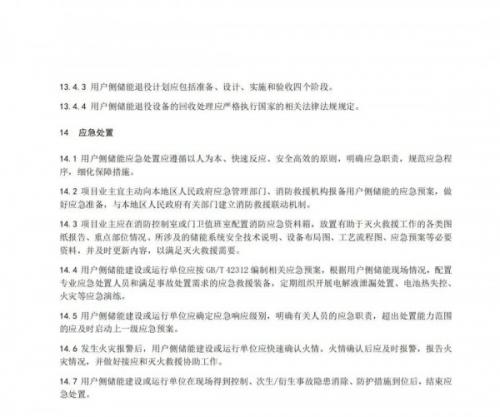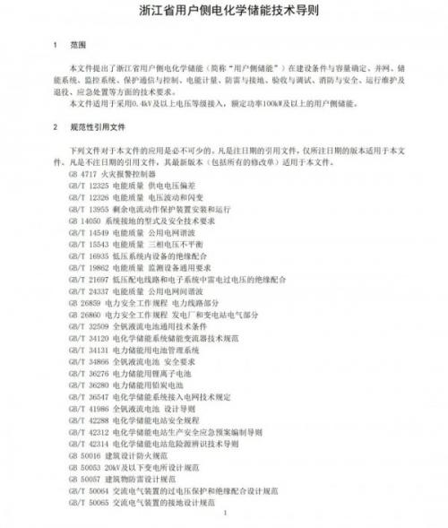 12月20日,浙江省能源局正式印发《浙江省用户侧电化学储能技术导则》。导则提出了浙江省用户侧电化学储能在建设条件与容量确定、并网、储能系统、监控系统、保护通信与控制、电能计量、防雷与接地、验收与调试、消防与安全、运行维护及退役、应急处置等方面的技术要求。适用于采用0.4kV及以上电压等级接入,额定功率100kW及以上的用户侧储能。