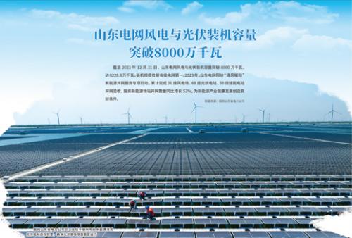 截至2023年12月31日,山东电网风电与光伏装机容量突破8000万千瓦,达8228.8万千瓦,装机规模位居省级电网第一。