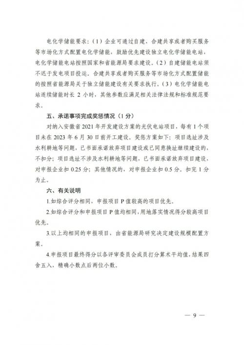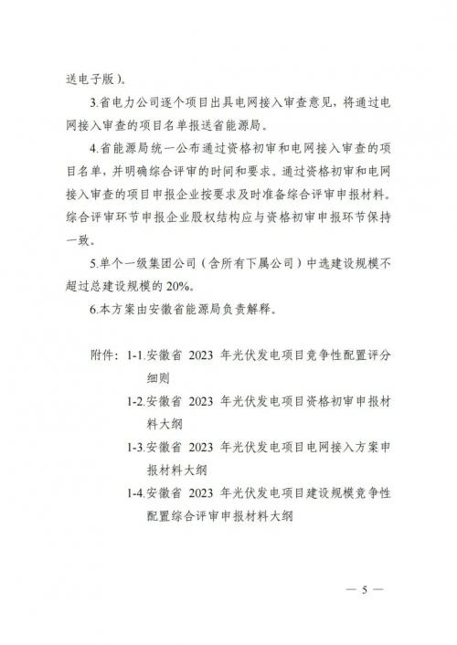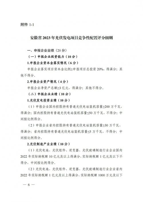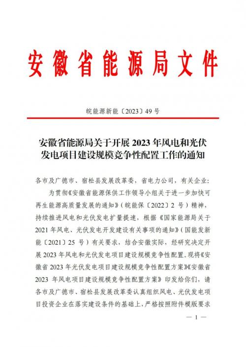 【国际能源网获悉】日前,安徽省能源局发布《关于开展2023年风电和光伏发电项目建设规模竞争性配置工作的通知》,启动4GW风、光项目竞配。本次安排的光伏项目竞配规模为2.5GW,申报范围为6MW及以上的光伏电站,但单体规模不得超过200MW。与乡镇级及以上人民政府签订开发投资协议,签订土地租赁协议,未占用基本农田和生态保护红线,未占用耕地,未在河道、湖泊、水库内建设。项目需在202412月底前首次并网发电,20256月底前全容量并网。