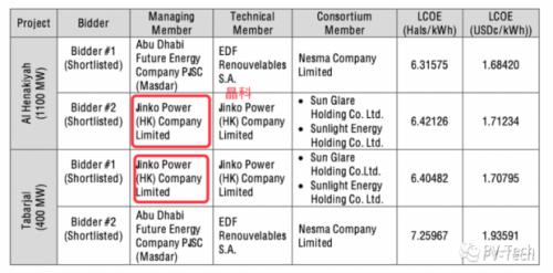 Tabarjal太阳能光伏项目的购电协议是与另外一个联合体签署,由晶科电力Jinko Power(HK)Company Limited作为管理和技术成员、Sun Glare Holding Co.和Sunlight Energy Holding Co.作为联合体成员组成。