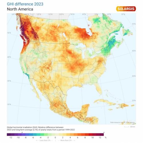 美国的太阳能表现也很稳定,一些地区受益于厄尔尼诺现象带来的更多日照和更少降水。中美洲的太阳辐照度高于平均水平,而非洲的太阳能资源保持了稳定和持续。