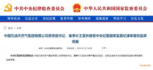 中国石油天然气集团有限公司原党组书记、董事长王宜林涉嫌严重违纪违法,目前正接受中央纪委国家监委纪律审查和监察调查。