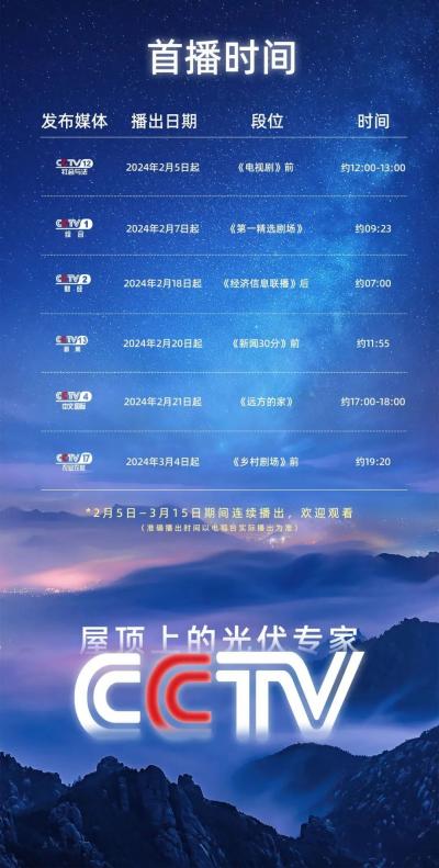 央视作为中国最具权威的媒体之一,覆盖面广、影响力大,其传播力无可比拟,鉴于对品牌的筛选和推广有着非常高的标准,对于合作伙伴的选择向来慎之又慎,能够连续两次登陆央视,代表了权威媒体对中来民生品牌实力和产品质量的一种肯定,以及在分布式光伏光领域卓越表现和深厚实力的高度认可。