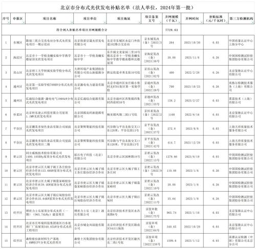 3月12日,北京发改委公布关于公示北京市分布式光伏发电项目补贴名单(2024年第一批)的通知。