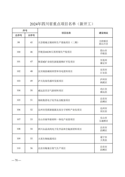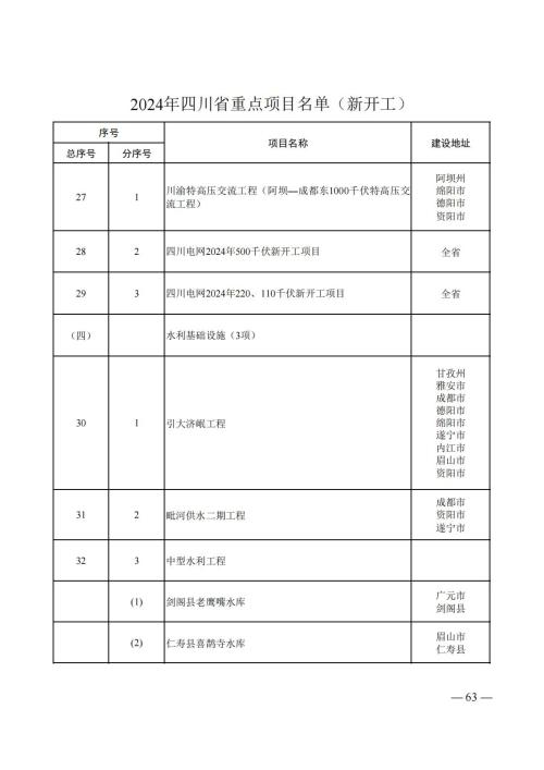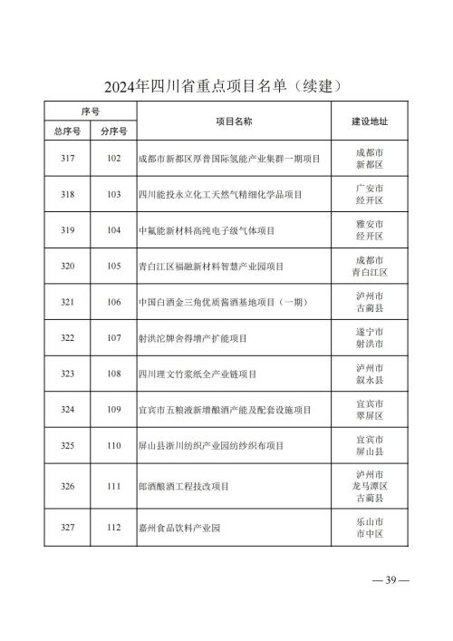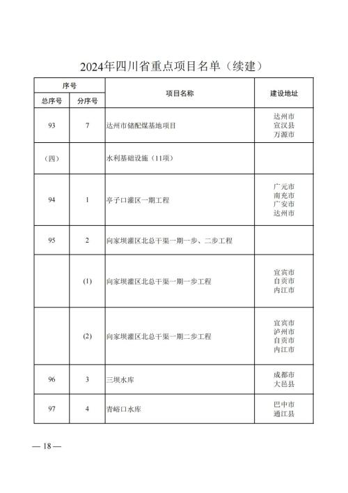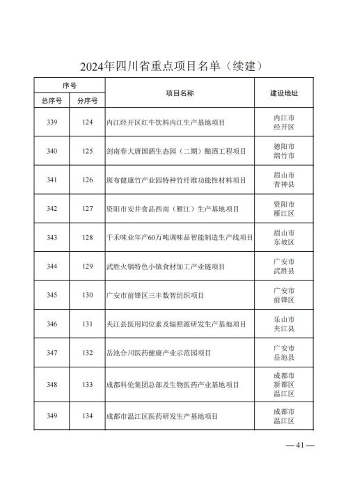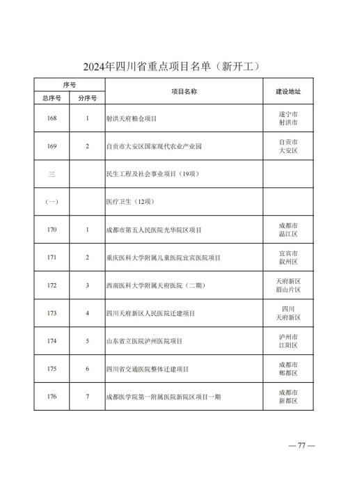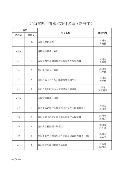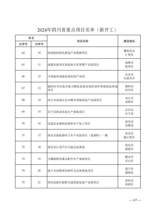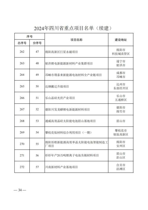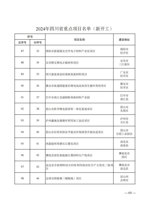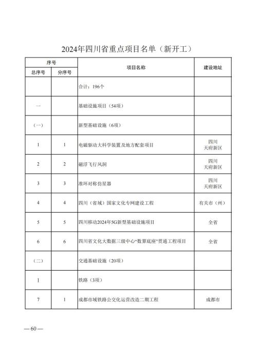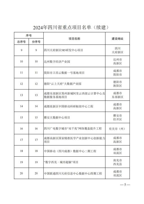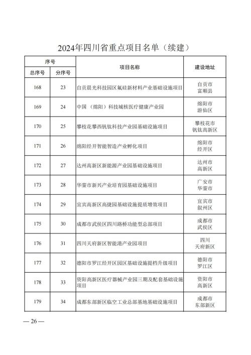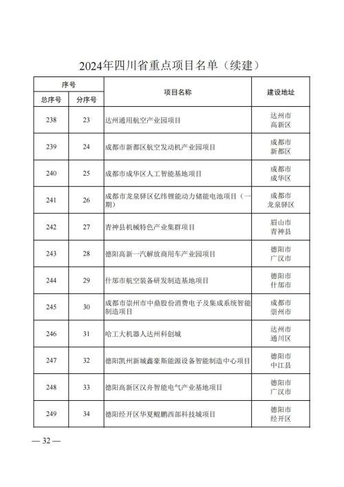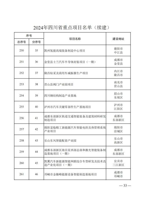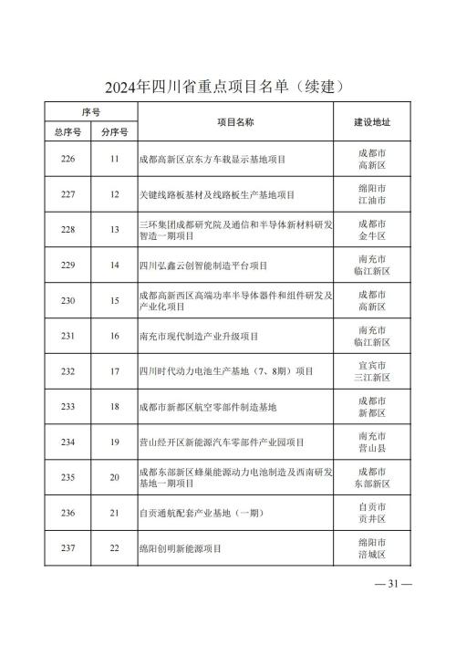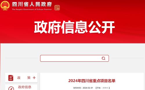 2月1日,四川省人民政府发布2024年四川省重点项目名单。