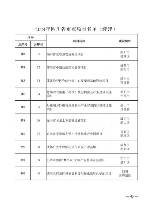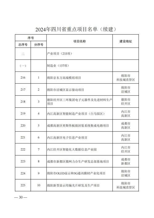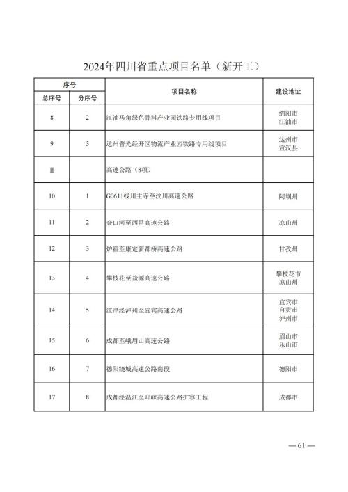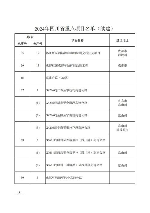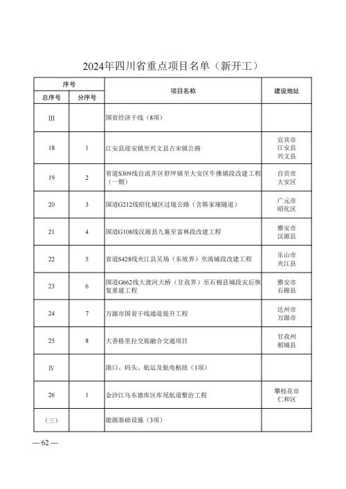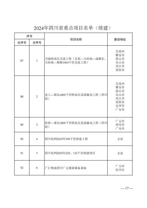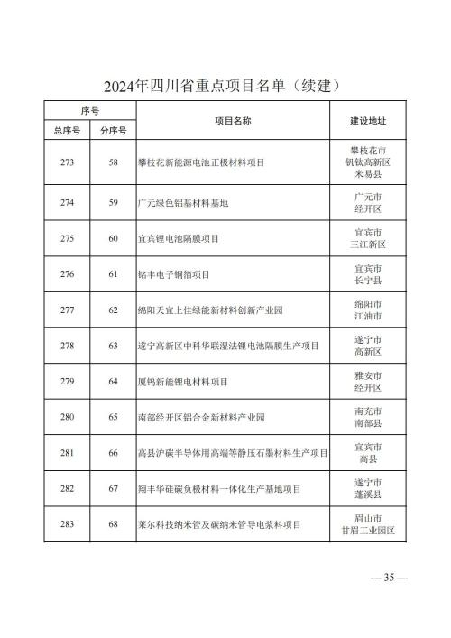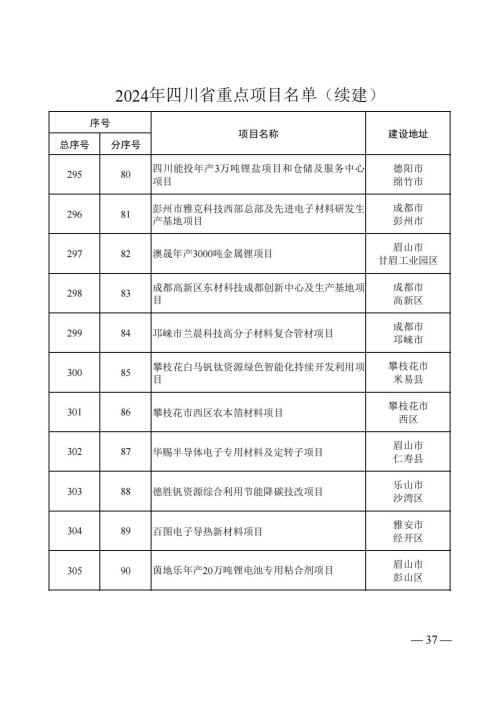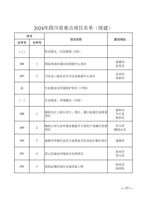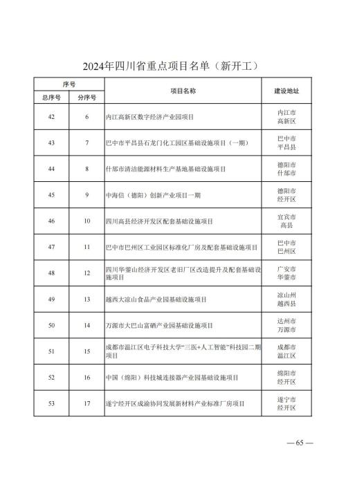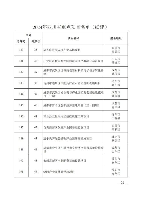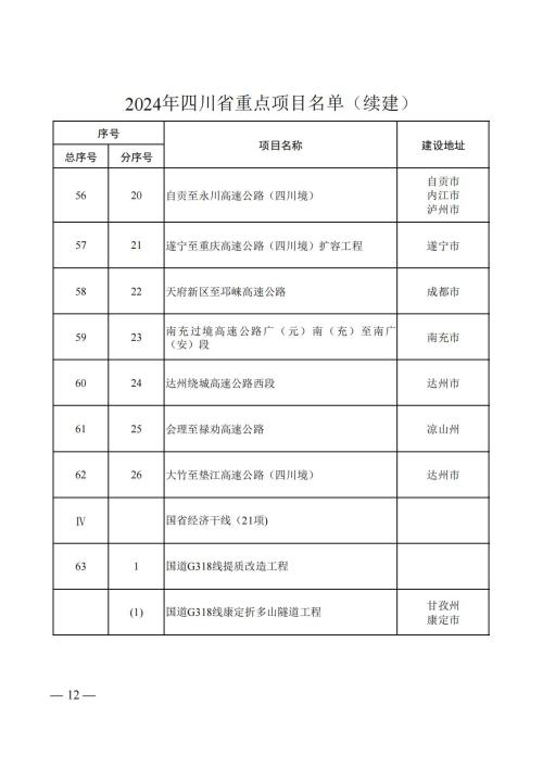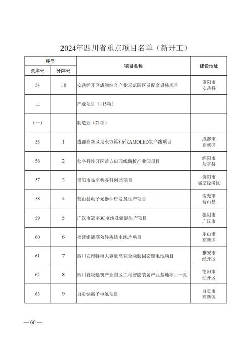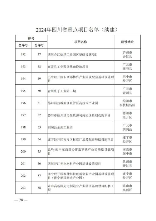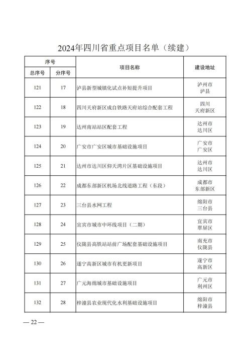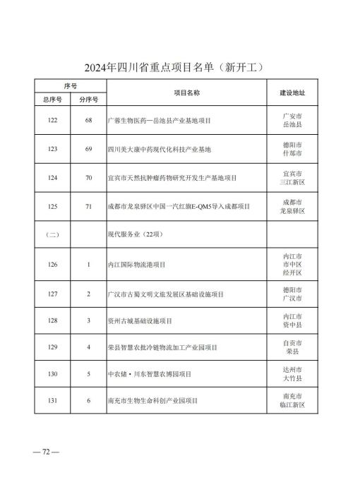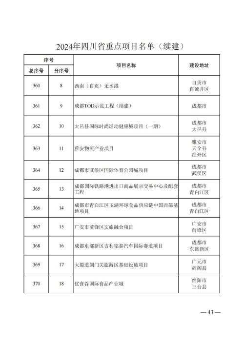 2月1日,四川省人民政府发布2024年四川省重点项目名单。