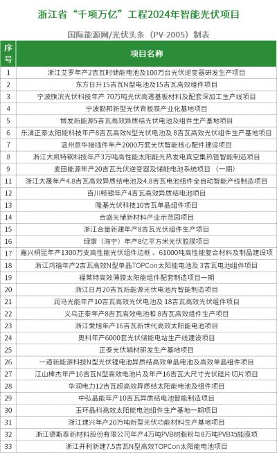 3月12日,《浙江省扩大有效投资“千项万亿”工程2024年重大建设项目实施计划项目表》发布。根据项目清单,涉及光伏项目44个(光伏电站项目11个+光伏产业链项目33个),明确光伏项目规模为898MW。