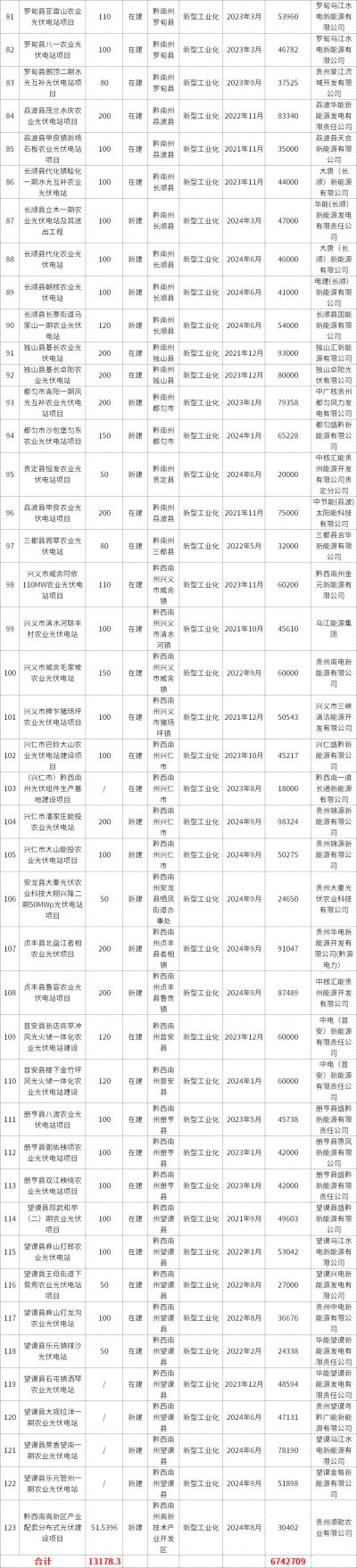 其中涉及光伏项目123个(光伏电站项目119个+光伏产业链项目4个),明确光伏项目规模为13178.3396MW,累计投资金额为674.2709亿元。