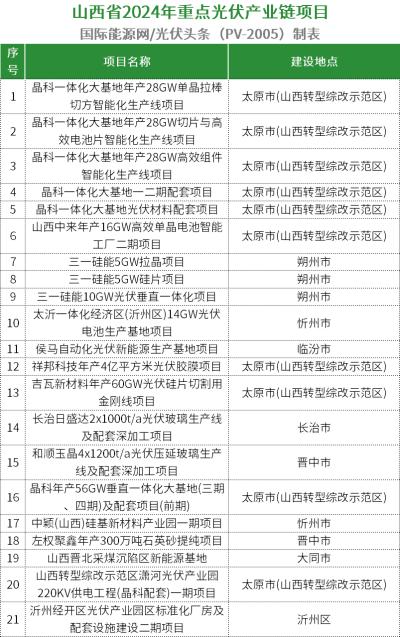根据项目清单,涉及光伏项目21个(光伏电站项目2个+光伏产业链项目19个)。其中,光伏产业链项目涉及光伏硅片、电池片、组件、切片、拉晶、胶膜、玻璃等,可明确电池产能规模为30GW,可明确组件产能规模为28GW。