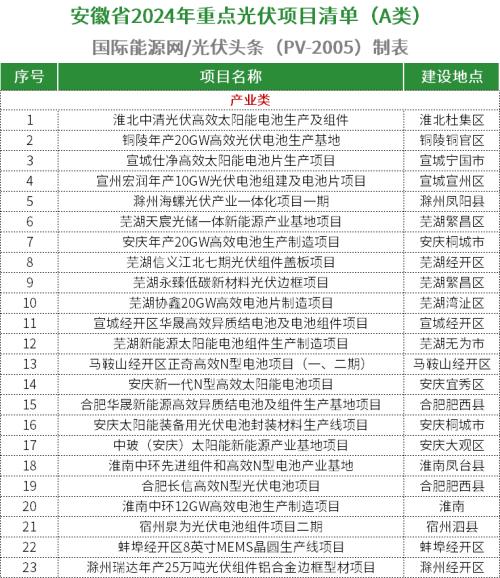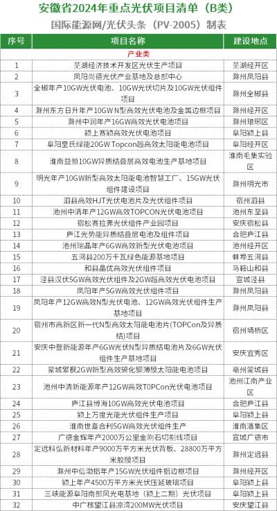 2月28日,安徽省人民政府发布关于印发安徽省2024年重点项目清单的通知。根据项目清单,涉及光伏项目55个(光伏电站项目4个+光伏产业链项目51个),明确光伏项目规模为200MW。