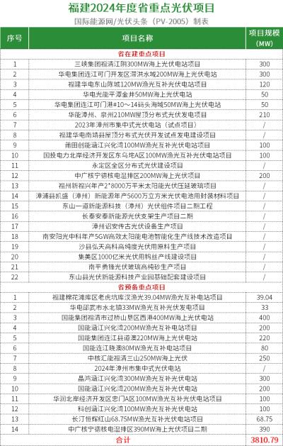 3月25日,福建省数据管理局印发2024年度省数字经济重点项目名单,确定2024年度省数字经济重点项目108个、总投资1310亿元,年度计划投资272亿元。其中,涉及光伏项目6个。