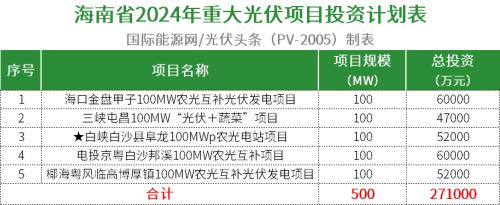 根据项目清单,涉及光伏电站项目5个,明确光伏项目规模为500MW,总投资27.1亿元。