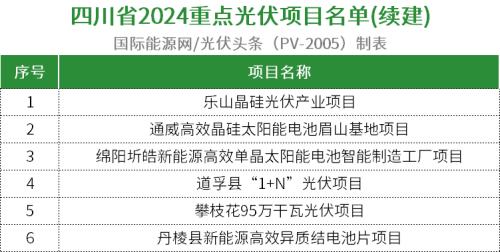 1月29日,四川省人民政府公布2024年四川省重点项目名单,共计700个重点项目。根据项目清单,涉及光伏项目11个(光伏电站项目4个+光伏产业链项目7个),其中2024重点新开工项目5个,2024重点续建项目6个,明确光伏项目规模为950MW。此外,7个光伏产业链项目涉及光伏电池等。