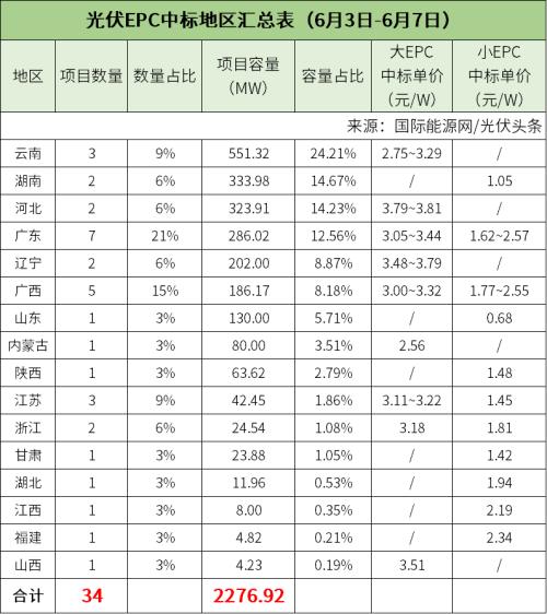 11个分布式大EPC项目,均价3.35元/W5个集中式大EPC项目,均价3.05元/W