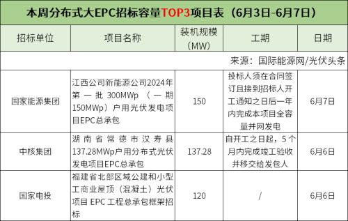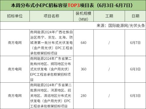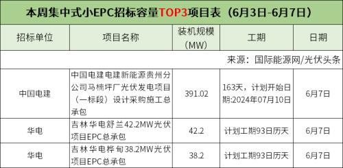此外,本周分布式小EPC、集中式小EPC招标容量Top3项目具体情况如下: