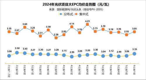本周分布式大EPC均价为3.35元/W,集中式大EPC均价为3.05元/W。