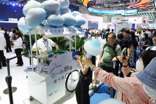 本次展会中,首航在给大家带来技术体验和视觉盛宴的同时,也精心准备了“零碳云游”系列互动游戏。观众可通过集章打卡、手机扫码、手机摇一摇等形式赢取首航精美礼品或红包奖励,现场还有棉花糖、3D打印定制咖啡供观众享用。展区活动精彩纷呈,人气持续高涨。