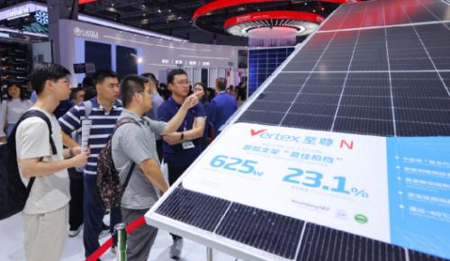由此可见,天合光能首创的210R矩形硅片组件以领先优势成为中版型600W+产品尺寸首选。相比去年展会上头部企业布局矩形硅片组件,今年展会上主流展商集体布局矩形硅片组件。在这一转变过程中,天合光能发挥了重要的引领和推动作用,可谓一“矩”定天下。