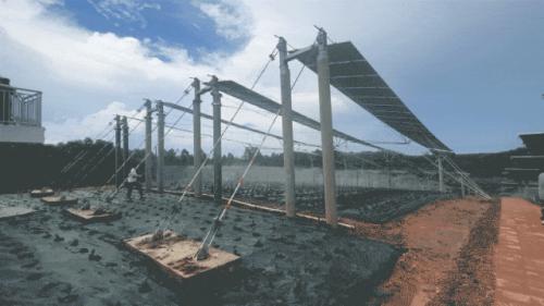 项目中,柔性支架部分采用了汇耀品尚能源科技的三索空间索网结构柔性光伏支架系统。该项目的建成落地,再一次拓宽了公司产品系统应用的广度和深度。