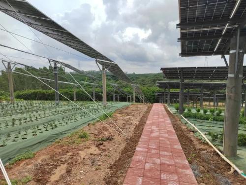 该项目在柔性和固定两种形式支架的光伏板下轮种多品类南药,通过不同光伏支架形式、不同行间距、不同板下区间的南药种植实例,建立南药品种与光伏阵列设计的最优配置,将南药种植技术与新能源发电技术深度融合。