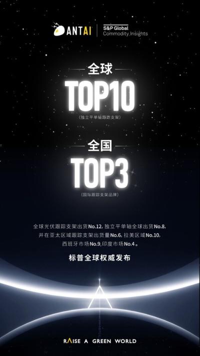 厦门2024年7月26日/美通社/ --近日,权威数据咨询机构标普全球(S&P Global)正式发布了2023年全球跟踪支架出货量排名,安泰新能源凭借在全球的市场拓展、技术创新及客户服务等方面的卓越表现,全球光伏跟踪支架位列第十二名,独立平单轴全球位列第八,并在亚太、拉美、印度和西班牙等多个国家和地区位列前十。跻身全球一线跟踪支架厂商行列,也是中国唯三进入该行列的国际支架品牌之一。