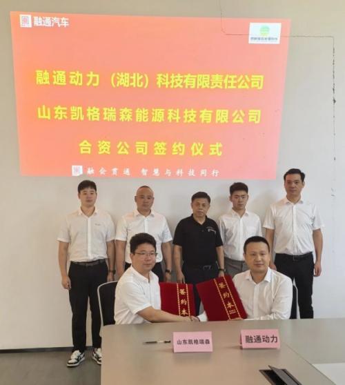 8月16日,融通动力(湖北)科技有限责任公司与山东凯格瑞森正式签署合资协议,双方在武汉共同投资设立合资公司,目标建设国内一流的氢燃料电池氢气循环系统生产项目。融通动力科技公司总经理皮业强与我司副总经理倪伟新完成现场签约。