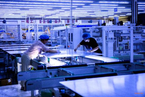 机械臂挥舞,自动抓取材料,串焊、叠层、层压、装框、清洗、包装……一天下线超千件光伏组件产品。记者10月16日在位于仪征市大仪镇的扬州善鸿新能源发展有限公司生产车间看到,企业生产线正在全自动运转,开足马力赶制出口的光伏太阳能组件订单。光伏发电是最优质的绿色能源之一,而光伏组件是光伏发电系统中的核心部分。近年来,大仪镇以助推绿色低碳发展为目标,积极引进高效光伏组件项目,大力发展光伏产业,培育壮大太阳能光伏产业链,助力乡镇经济发展。
