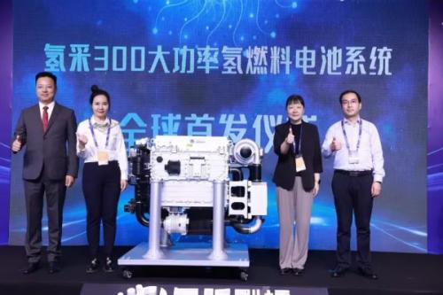 “氢采300”主要针对包括矿卡、船舶、轨道交通在内的大中重载型应用,额定功率输出280kW,峰值功率300 kW,质量功率密度840W/kg,可实现-40℃低温启动,-35℃快速自启动,最高效率>60%,额定功率响应时间9s,防护等级达到IP67,采用石墨电堆和智能化水热管理系统,可满足商用车25000h以上寿命要求。该氢采300在整体上具有高效率、高集成化、宽域环境适应性、长寿命、多领域应用的特点。