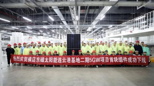 历时6个月紧张建设,连云港东磁新能源科技有限公司二期5GW太阳能高效组件项目首块组件于近日正式下线。该项目总建筑面积8万平方米,引进串焊机、排版机、叠焊机、流水线等设备100余套。至此,连云港基地成为东磁目前最大的组件生产基地。
