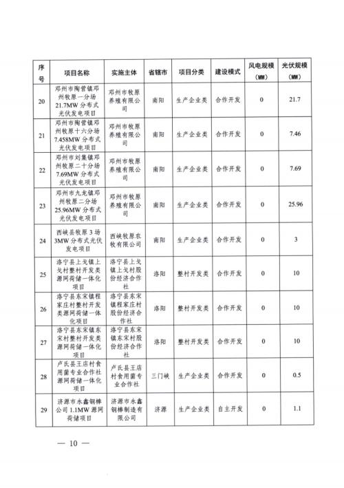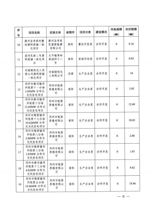 根据文件,本次河南下发的第四批源网荷储一体化项目,共包含工业企业类23个、增量配电网类9个、农村地区类29个项目。根据统计,本批次涉及项目规模共653.91MW,其中光伏418.91MW、风电235MW。